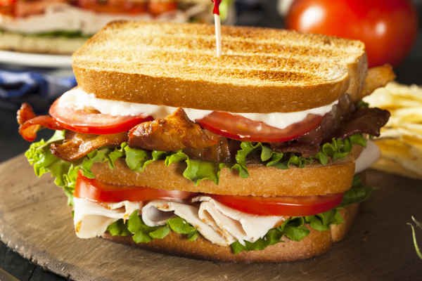 Turkey with bacon, American cheese, lettuce, tomato and mayonnaise.